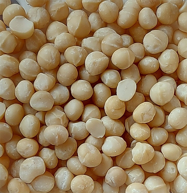A macadâmia é um fruto rico em nutrientes como fibras, proteínas, gorduras saudáveis, potássio, fósforo, cálcio e magnésio, e vitaminas do complexo B e vitamina A e E.